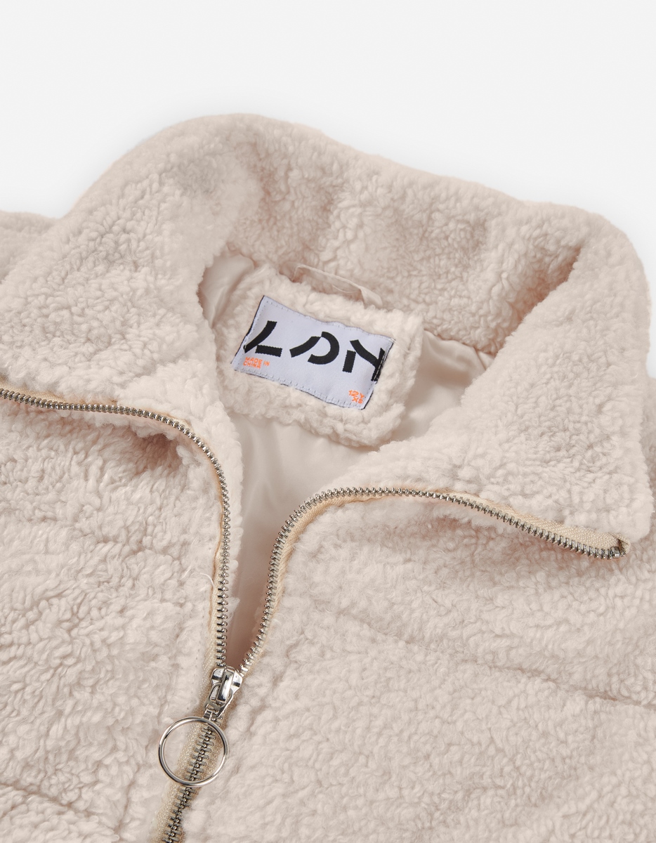 -Παιδικό μπουφάν από συνθετικό μαλλί προβάτου σε εκρού απόχρωση για κορίτσια