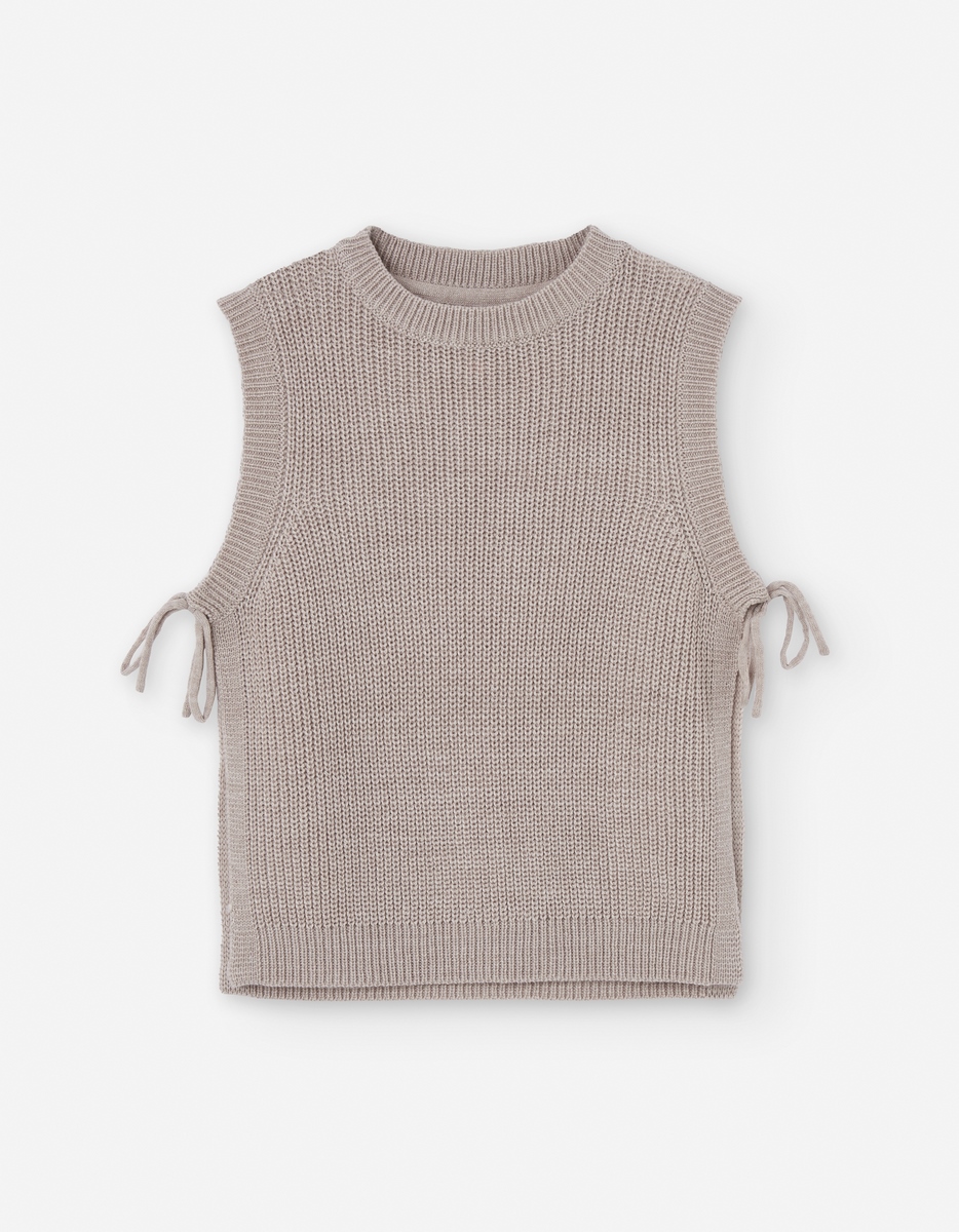 -Παιδική αμάνικη πλεκτή μπλούζα για κορίτσια σε μπεζ απόχρωση