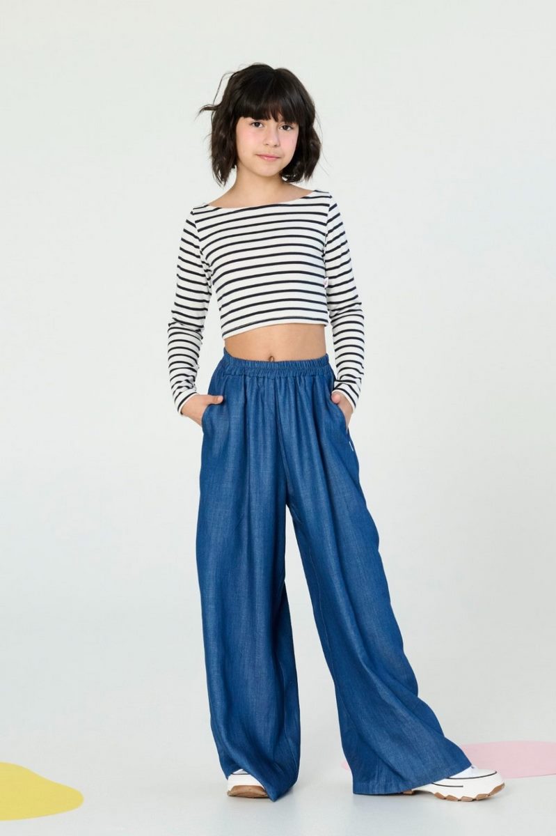 Melin Rose Φαρδιά παντελόνα με όψη τζιν, ψηλόμεση με λάστιχο, πλαϊνές τσέπες και πιέτες. Άνετη εφαρμογή, ιδανική για casual αλλά και πιο formal εμφανίσεις!