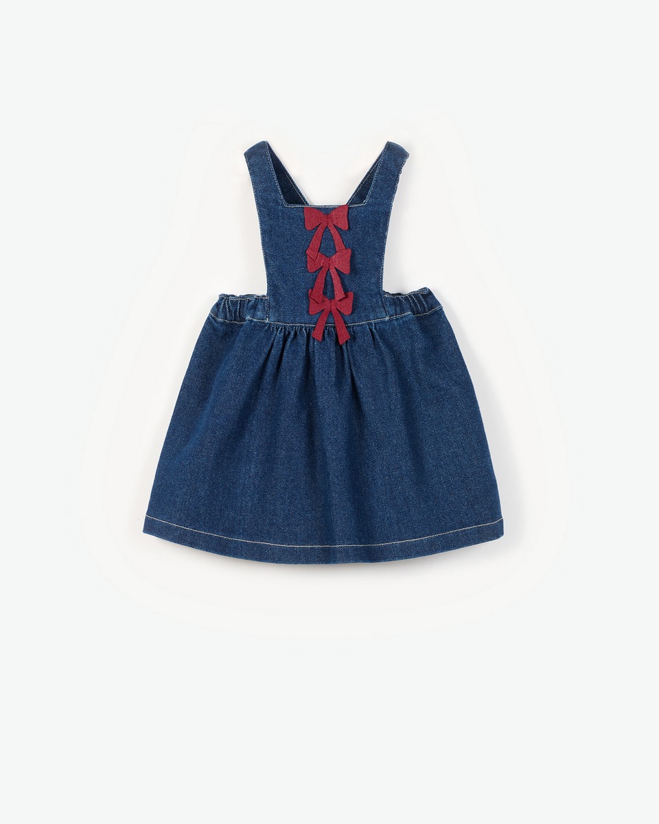 -Παιδική φούστα τζιν με φιογκάκια από τσόχα σε μπορντό απόχρωση.