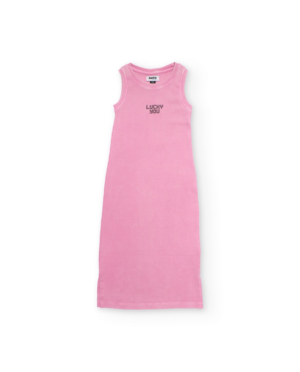Αυτό το ροζ φόρεμα για κορίτσια είναι φτιαγμένο από απαλό, ελαστικό πλεκτό ύφασμα με ραβδώσεις που αγκαλιάζει άνετα το σώμα. Διαθέτει αμάνικο, ίσιο σχέδιο, προσφέροντας μια απλή αλλά κομψή εμφάνιση για καθημερινή χρήση. Μια μικρή κεντημένη λεπτομέρεια στο μπροστινό μέρος γράφει “Lucky You”, προσθέτοντας μια μοντέρνα και παιχνιδιάρικη πινελιά. Ένα ελαφρύ και ευέλικτο ένδυμα, ιδανικό για τις ζεστές μέρες.