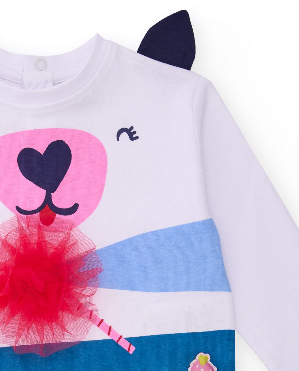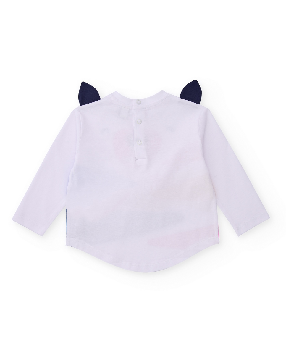 -Λευκό μπλουζάκι με μακριά μανίκια για κορίτσια, από απαλό βαμβάκι.