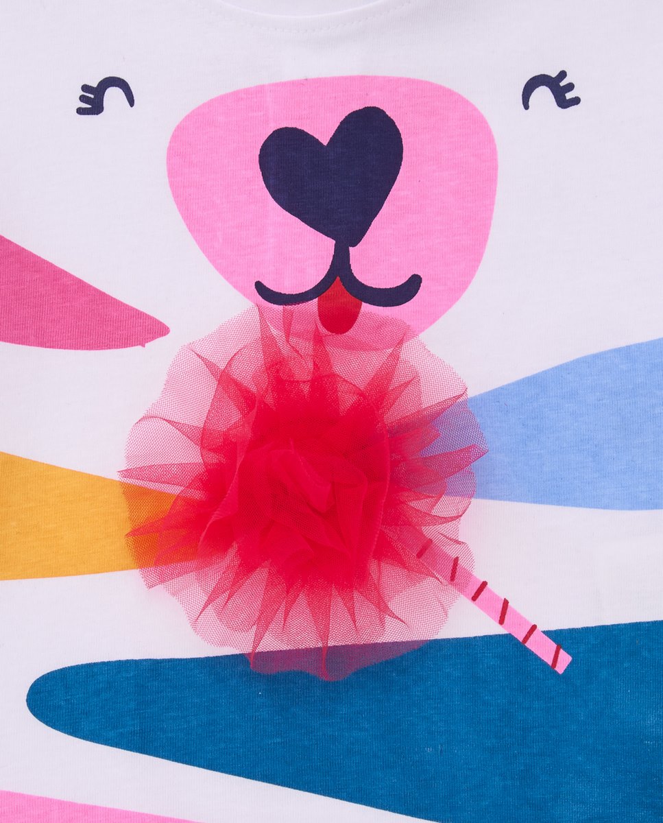 -Διαθέτει χαριτωμένο πολύχρωμο τύπωμα με πρόσωπο ζώου, τρισδιάστατο φουντωτό φούντα από κόκκινο τούλι και ανασηκωμένα αυτιά στους ώμους.