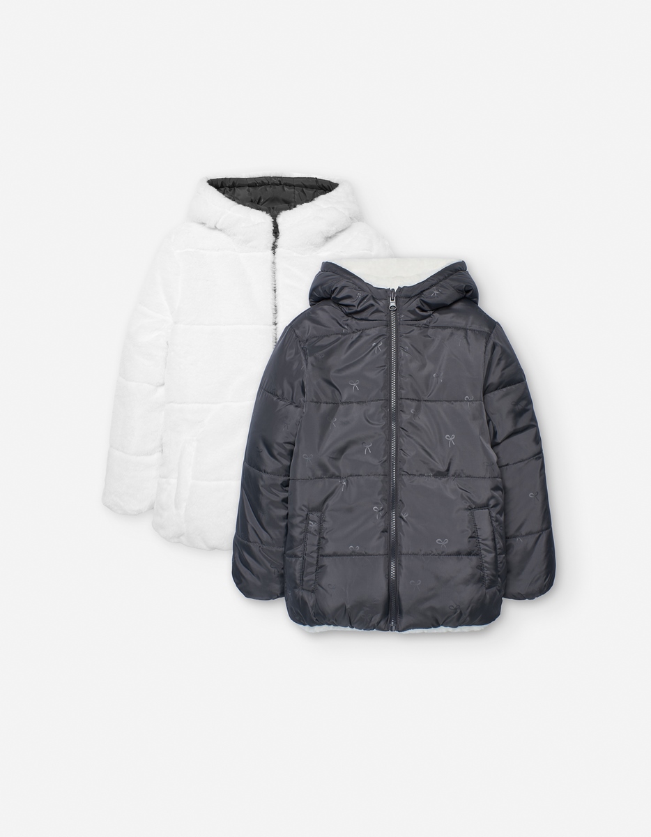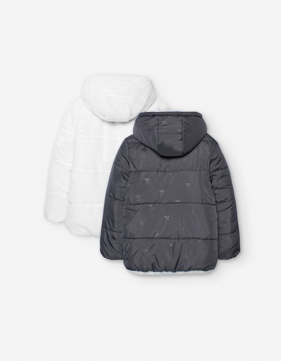 -Παιδικό μπουφάν διπλής όψης για κορίτσια σε γκρι απόχρωση