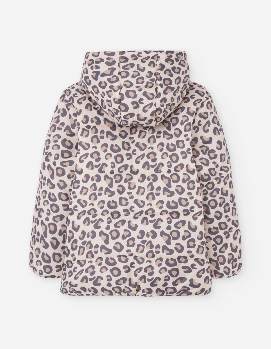 -Παιδικό μακρυμάνικο μπουφάν puffer σε μπεζ λεοπάρ απόχρωση
