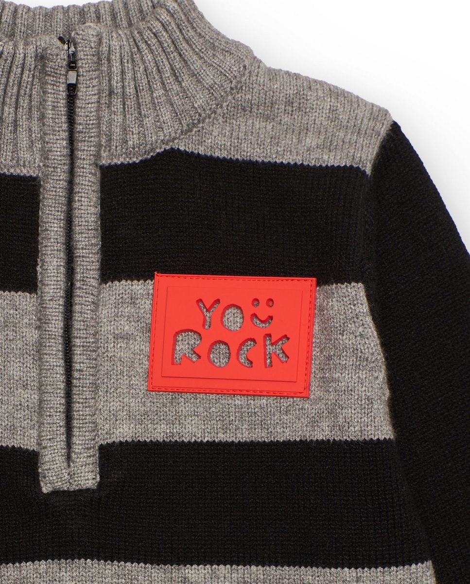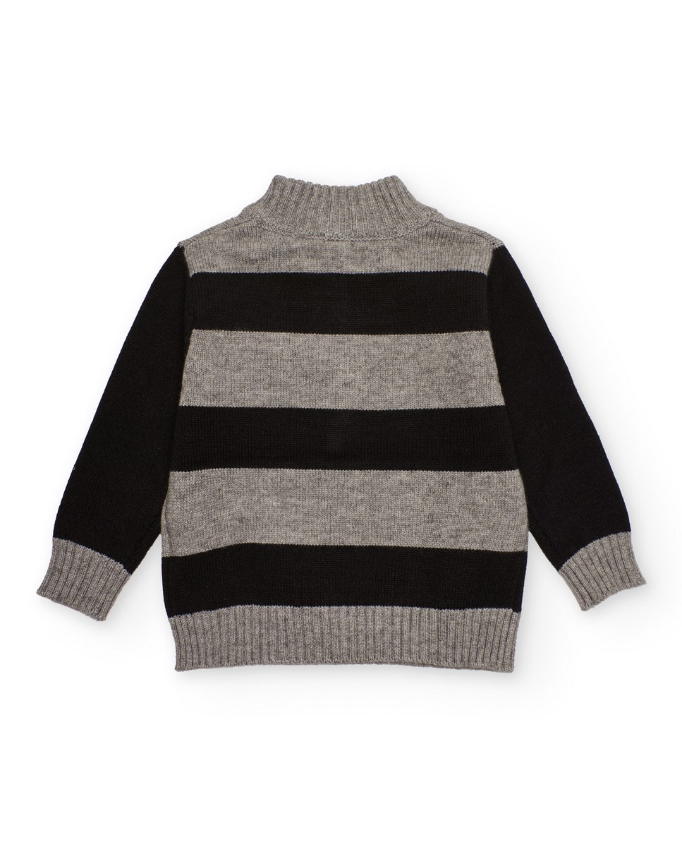 -Πλεκτό πουλόβερ για αγόρια σε γκρι και μαύρους τόνους με οριζόντιες ρίγες.