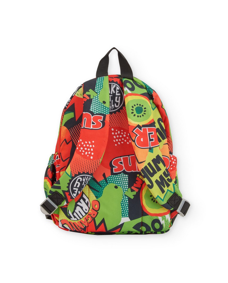Σακίδιο πλάτης για αγόρια σε έντονες αποχρώσεις του πράσινου, του κόκκινου και του πορτοκαλί, με ενεργητικό σχεδιασμό εμπνευσμένο από γραφικά και φρουτώδη μοτίβα. Το ευρύχωρο κύριο διαμέρισμα παρέχει άφθονο χώρο για την οργάνωση των καθημερινών απαραίτητων αντικειμένων, ενώ η μπροστινή τσέπη προσθέτει επιπλέον χώρο για αντικείμενα γρήγορης πρόσβασης. Οι πλαϊνές τσέπες είναι ιδανικές για μικρά μπουκάλια ή αξεσουάρ. Οι ρυθμιζόμενοι ιμάντες ώμου εξασφαλίζουν άνετη εφαρμογή που προσαρμόζεται στην ανάπτυξη του αγοριού, και η επάνω λαβή επιτρέπει την εύκολη μεταφορά. Ένα στιβαρό και εντυπωσιακό αξεσουάρ, ιδανικό για όλες τις καθημερινές περιπέτειες.