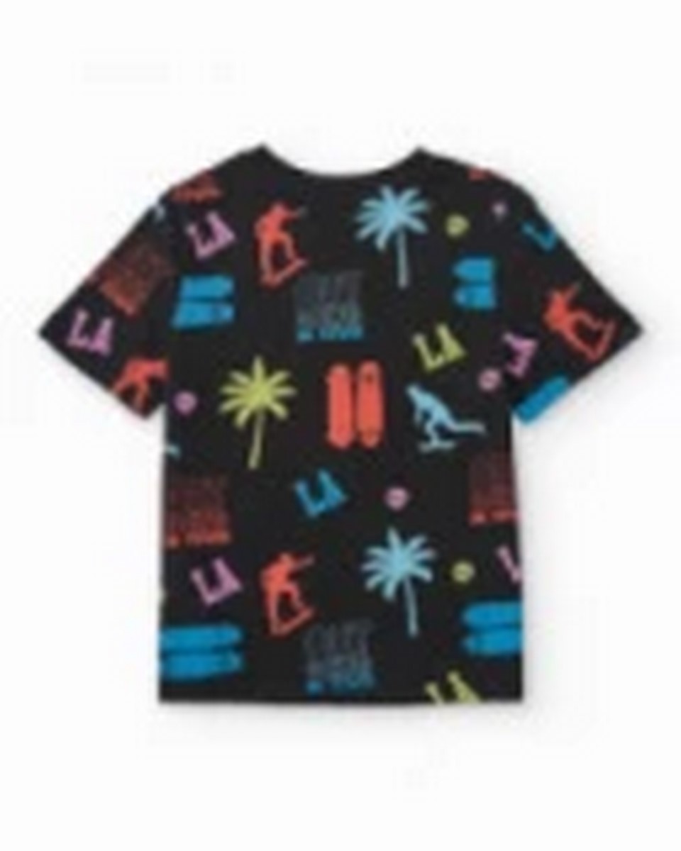 Αυτή η αγορίστικη στολή περιλαμβάνει ένα μαύρο μπλουζάκι με πολύχρωμη στάμπα εμπνευσμένη από τον κόσμο του skateboarding και το αστικό περιβάλλον, σε συνδυασμό με απαλό μαύρο βερμούδα. Το μπλουζάκι ξεχωρίζει για τον δυναμικό του σχεδιασμό, με σιλουέτες skater, board και τυπογραφίας που προσδίδουν ένα μοντέρνο και casual στυλ. Οι βερμούδες διαθέτουν ελαστική ζώνη με ρυθμιζόμενο κορδόνι και πλαϊνές τσέπες για άνεση και λειτουργικότητα. Αυτό το ευέλικτο σύνολο προσθέτει μια δυναμική και μοντέρνα πινελιά στην καθημερινή σας γκαρνταρόμπα.