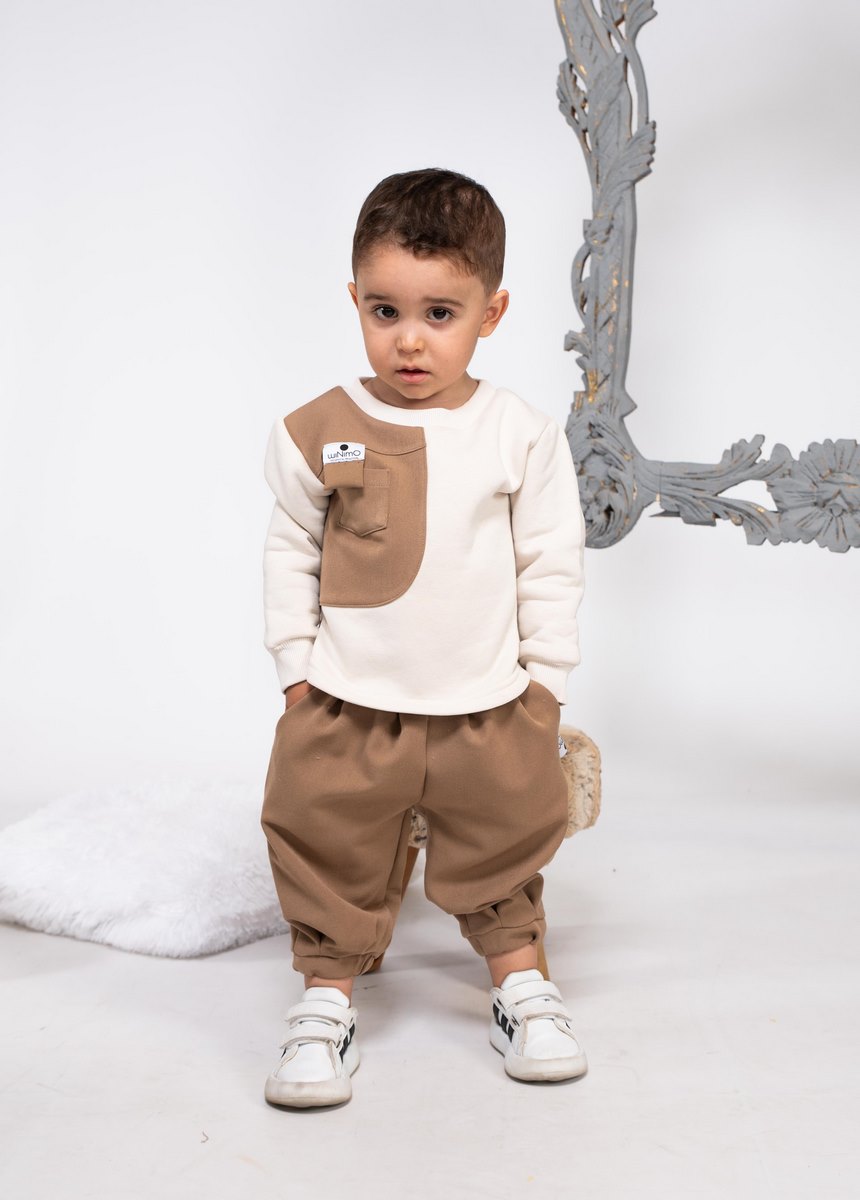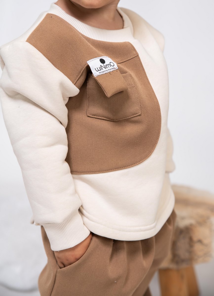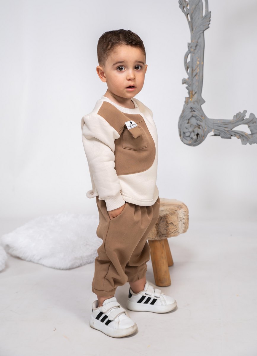 -Παιδικό σετ 2 τεμαχίων με μπλούζα φούτερ με λαιμόκοψη και ένθετο κομμάτι υφάσματος