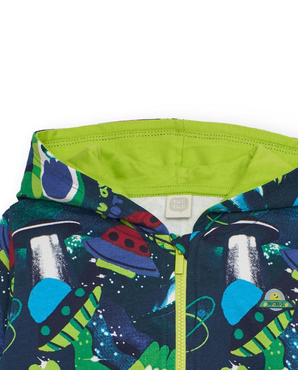 -Μπλε αγορίστικο φούτερ και παντελόνι με τύπωμα σε όλη την επιφάνεια με έντονα διαστημικά μοτίβα.