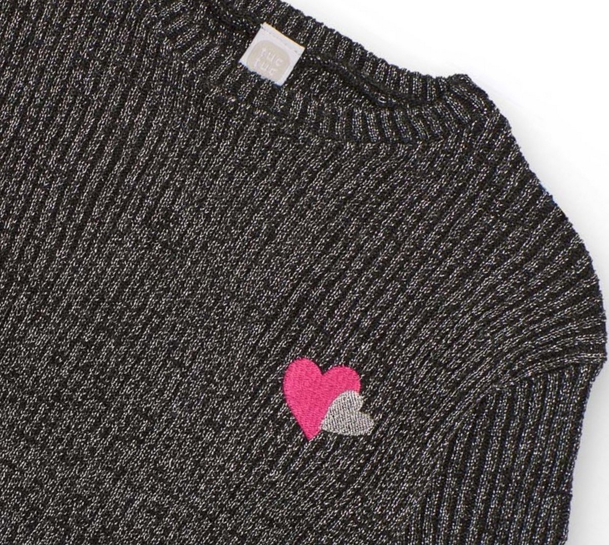 -Πλεκτό σετ δύο τεμαχίων για κορίτσια, με μακρυμάνικο πουλόβερ με μοτίβο καρδιάς στο στήθος και ασορτί παντελόνι με βολάν στο τελείωμα.