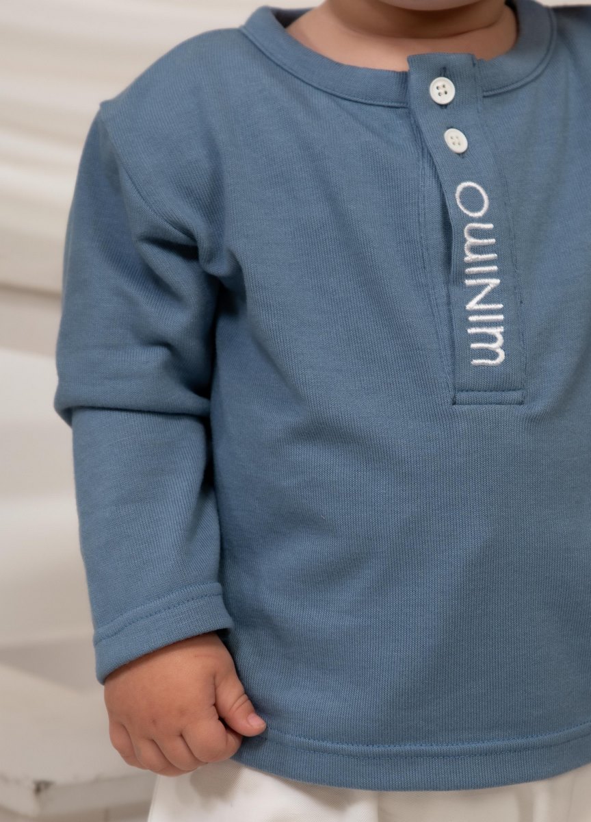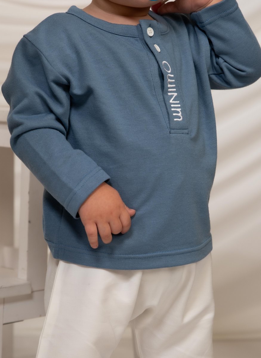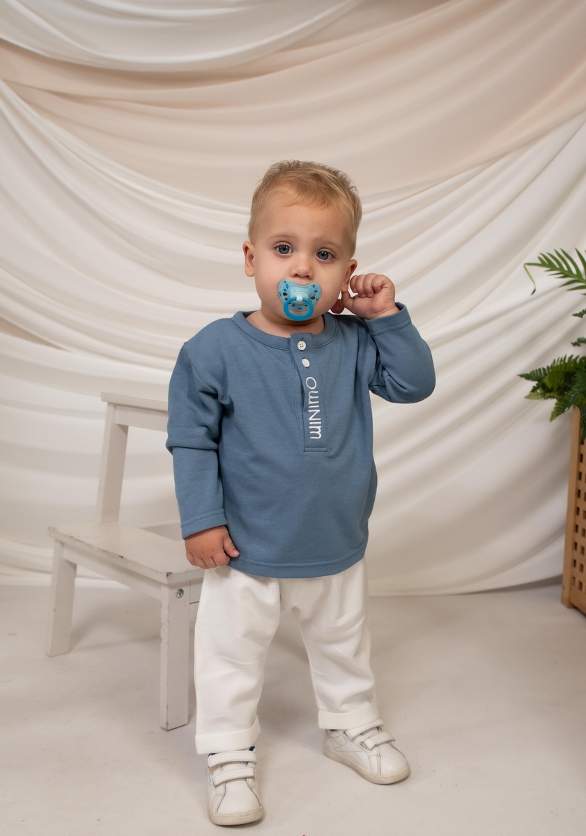 Άνετο και μοντέρνο παιδικό σετ για αγόρια, ιδανικό για καθημερινές εμφανίσεις με στυλ. Το σύνολο αποτελείται από μπλούζα μακρυμάνικη σε όμορφη μπλε απόχρωση και παντελόνι σε εκρού χρώμα, δημιουργώντας έναν κομψό και εύκολο συνδυασμό για κάθε περίσταση. Η μπλούζα διαθέτει στρογγυλή λαιμόκοψη με κουμπιά και διακριτική κάθετη λεπτομέρεια με το λογότυπο, που προσθέτει μοντέρνο χαρακτήρα στο ρούχο. Το παντελόνι προσφέρει άνετη εφαρμογή και ελευθερία κινήσεων, ιδανικό για δραστήρια μικρά παιδιά. Κατασκευασμένο από μαλακά και ποιοτικά υφάσματα, το σετ εξασφαλίζει άνεση καθ’ όλη τη διάρκεια της ημέρας.