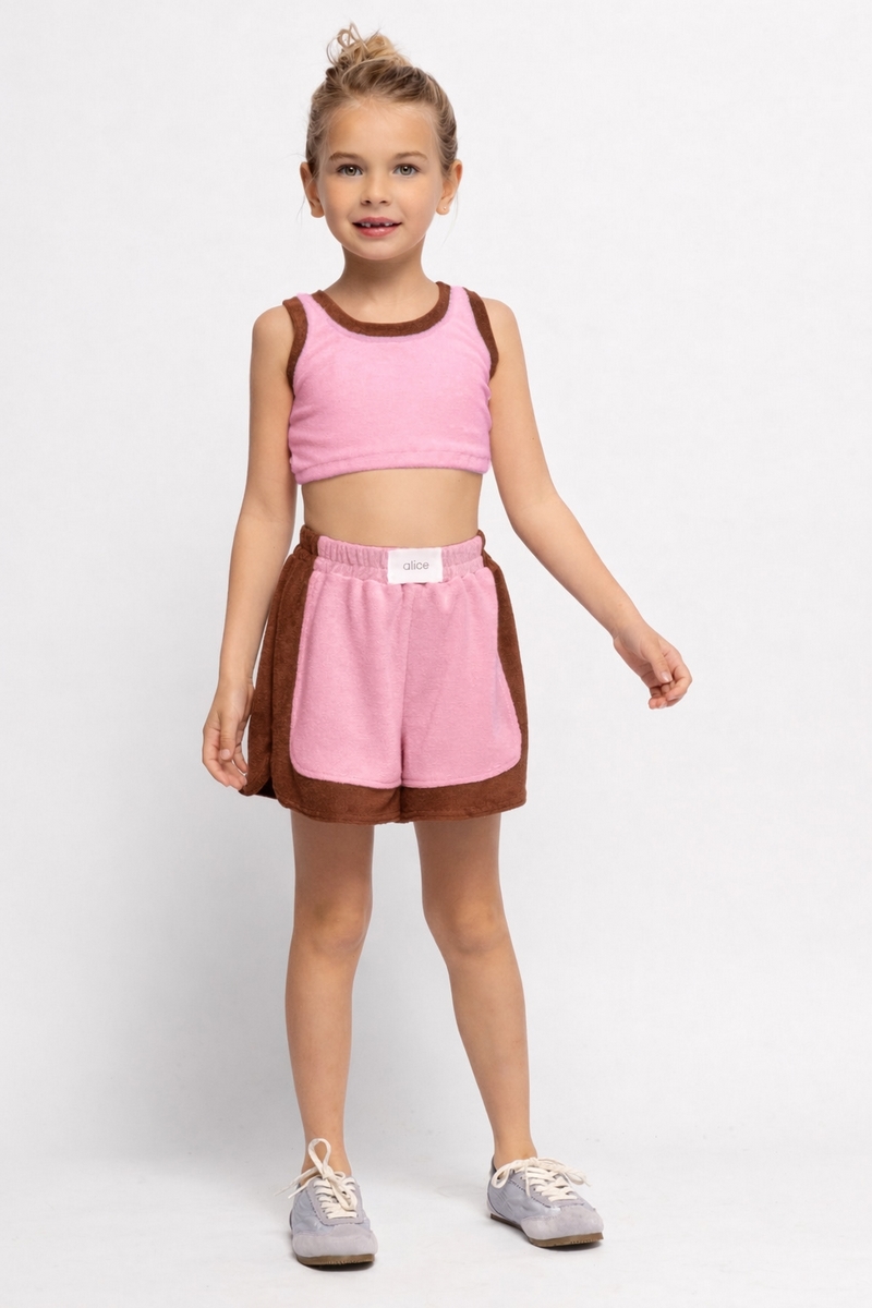 Σετ πετσετέ σε διχρωμία με σορτς και crop top. Μια ιδανική επιλογή για τις καλοκαιρινές εμφανίσεις.