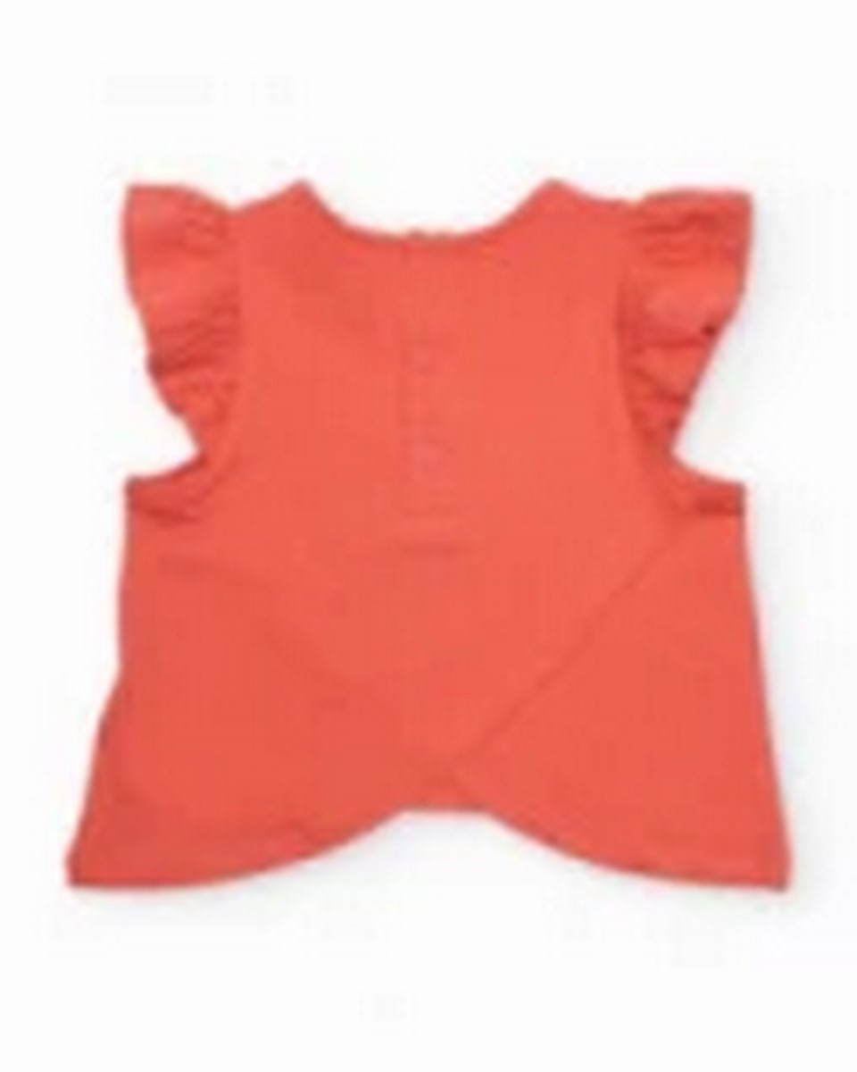 Κοριτσίστικο σετ που αποτελείται από ένα κοραλί μπλουζάκι και μπλε σορτς, φτιαγμένο από απαλό και ελαφρύ ύφασμα, ιδανικό για τις ζεστές μέρες. Το μπλουζάκι διαθέτει ένα διασκεδαστικό τύπωμα με θέμα τη θάλασσα σε μπλε αποχρώσεις, με μικρές καρδιές που προσθέτουν μια γλυκιά πινελιά. Τα βολάν στα μανίκια ενισχύουν την καλοκαιρινή, ντελικάτη εμφάνιση. Το βαθύ μπλε σορτς περιλαμβάνει ελαστική ζώνη στη μέση για άνετη εφαρμογή και βολάν στο στρίφωμα που προσθέτει κίνηση και γοητεία. Ένα φρέσκο, άνετο σετ, ιδανικό για το καλοκαίρι.
