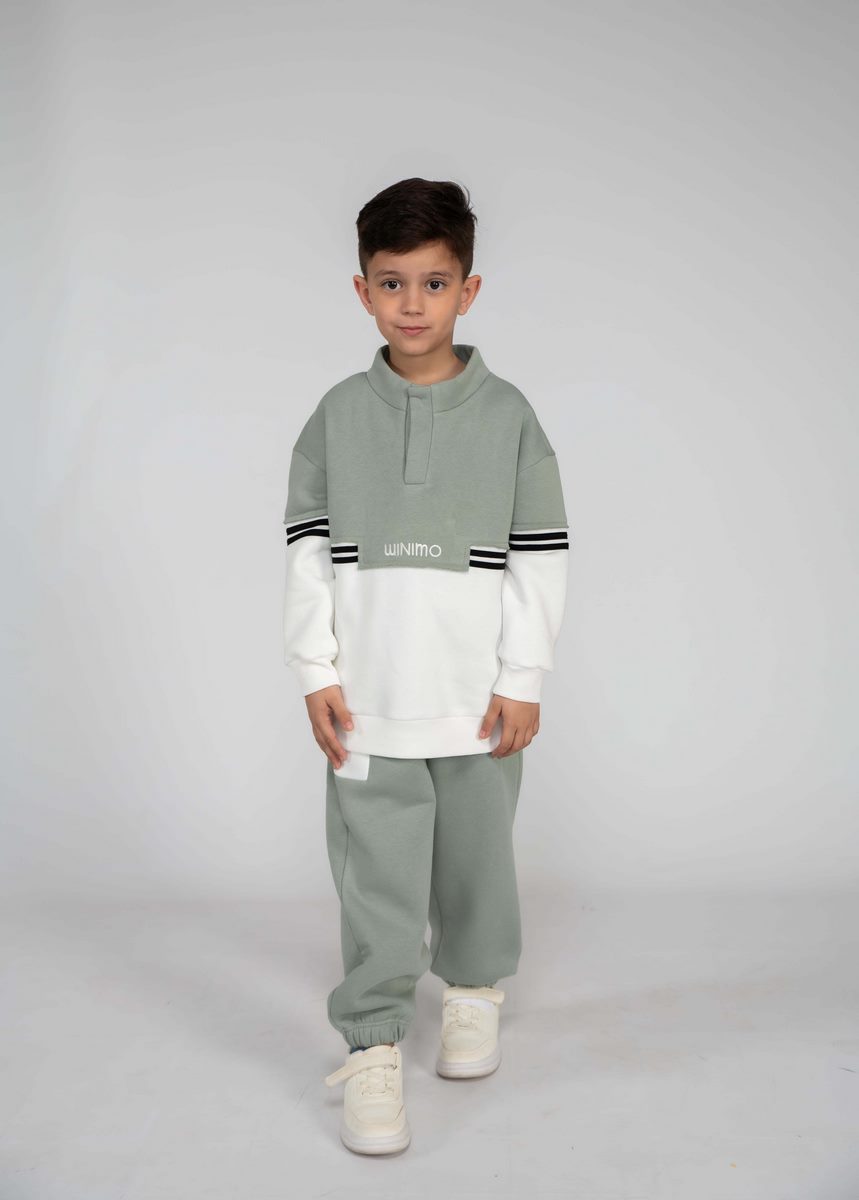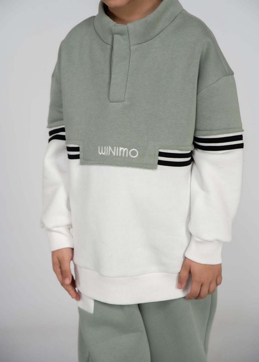 -Σετ φούτερ φόρμα που αποτελείται από μπλούζα φούτερ με συνδυασμό χρώματος, ρίγες και κέντημα minimo.