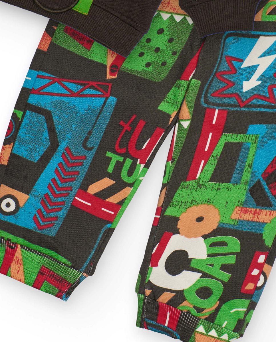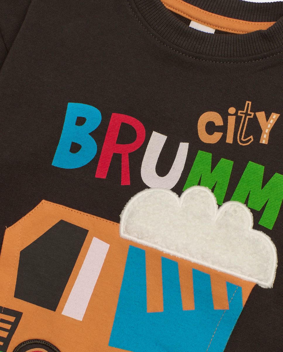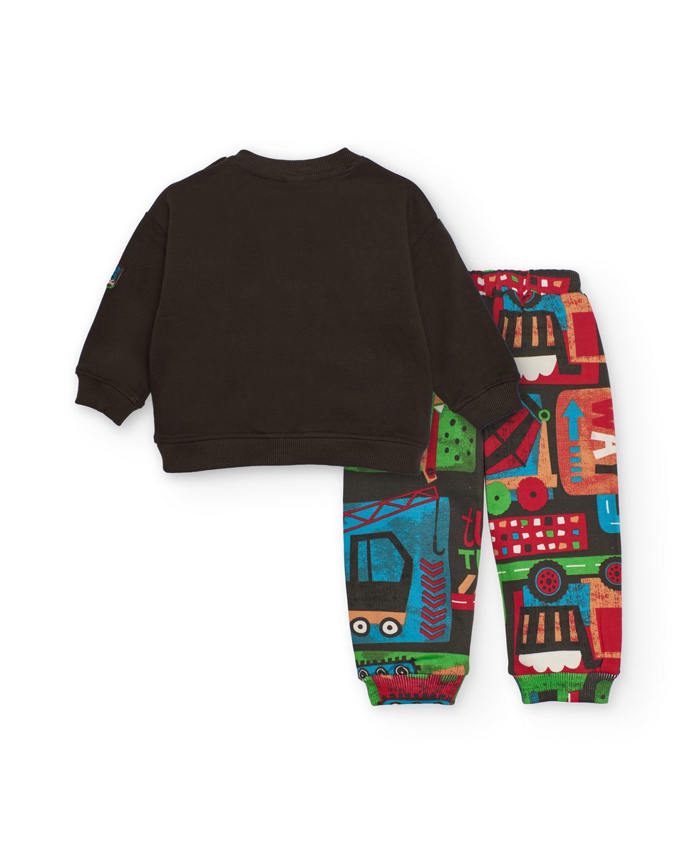 -Σετ για αγόρι που περιλαμβάνει καφέ φλις φούτερ με πολύχρωμο φορτηγό και τύπωμα κειμένου στο μπροστινό μέρος.