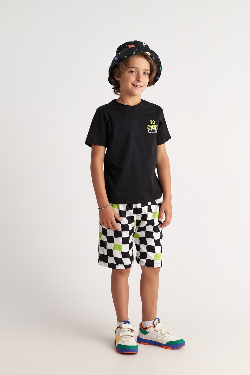 Το σετ Chess Neon “Το Όνειρο Club” της Two in a Castle είναι μια μοντέρνα και άνετη επιλογή για αγόρια που αγαπούν το σύγχρονο street style με παιχνιδιάρικες λεπτομέρειες. Αποτελείται από κοντομάνικο μαύρο T-shirt με διακριτικό logo “Το Όνειρο Club” στο στήθος και βερμούδα με allover σκακιέρα print σε μαύρο-λευκό, εμπλουτισμένο με έντονες lime πράσινες πινελιές. Σχεδιασμένο για καθημερινή χρήση, το σετ προσφέρει άνετη εφαρμογή και ελευθερία κινήσεων, ενώ η ιδιαίτερη χρωματική αντίθεση χαρίζει δυναμικό και fashion-forward χαρακτήρα. Με σύγχρονη αισθητική και relaxed γραμμές, είναι ιδανικό για αγόρια που θέλουν να ξεχωρίζουν, παραμένοντας άνετα όλη μέρα.