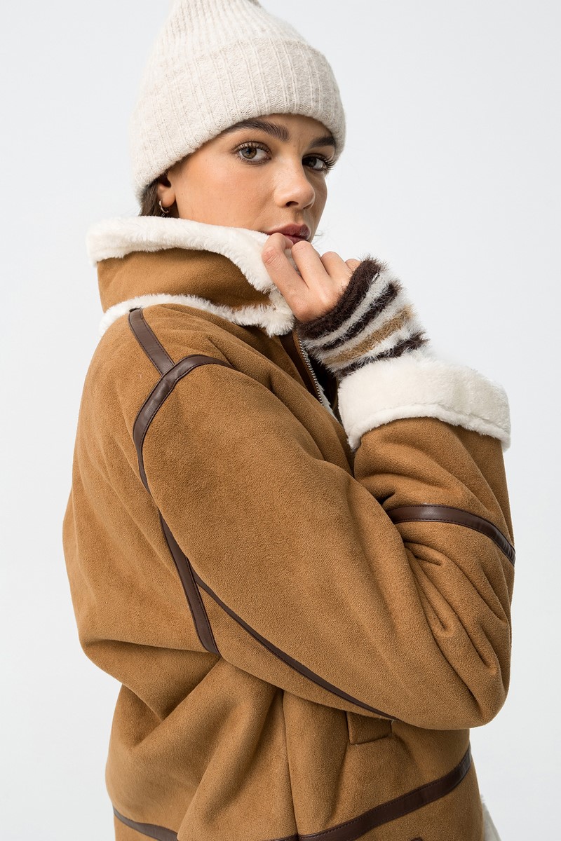 -Μπουφάν από ύφασμα σουέτ σε χαλαρή εφαρμογή σε συνδυασμό με τεχνητή γούνα στο εσωτερικό