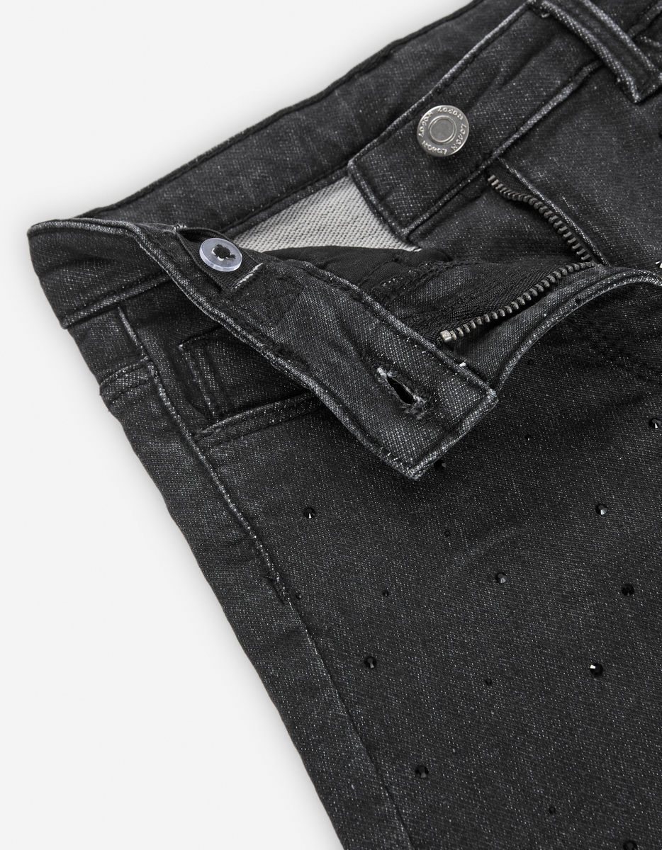 -Παιδικό τζιν καμπάνα για κορίτσια σε μαύρη απόχρωση με στρας στο μπροστινό μέρος