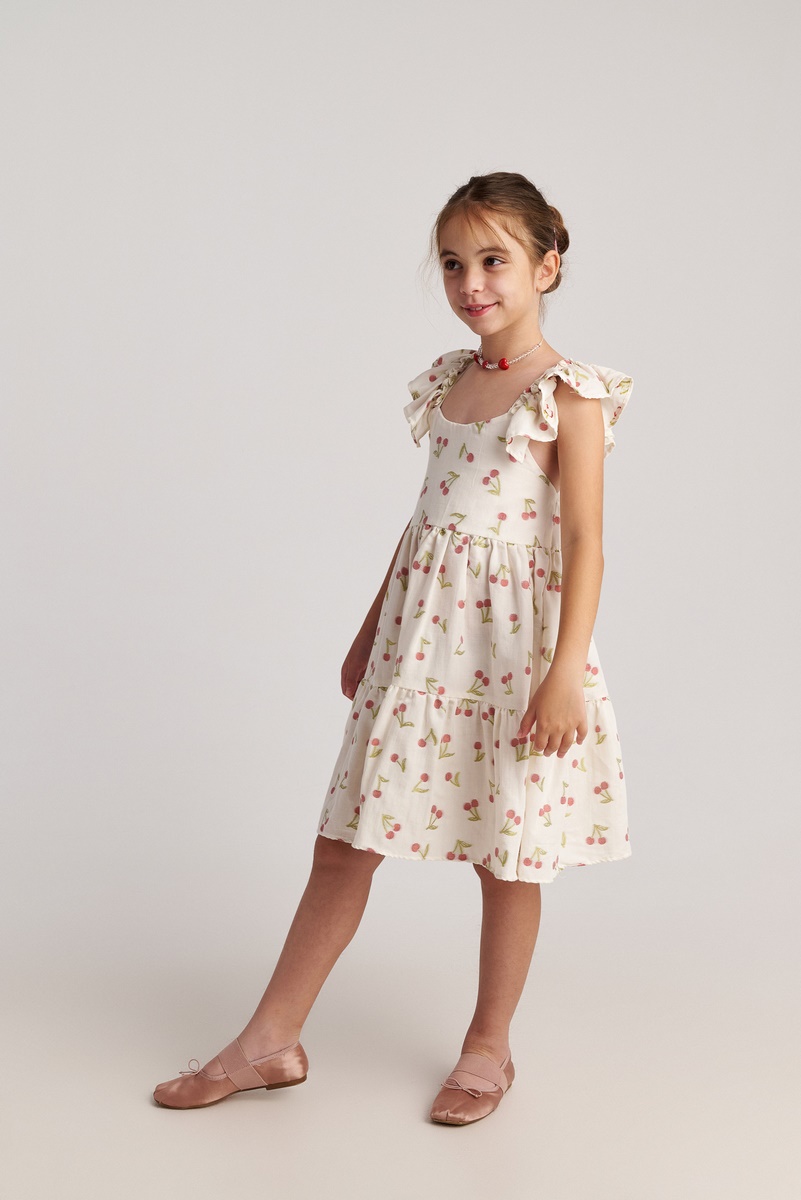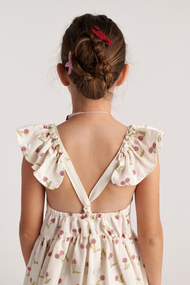 Το παιδικό φόρεμαSummer Tart αποπνέει γλυκύτητα και καλοκαιρινή φρεσκάδα. Σε απαλή εκρού απόχρωση με μοτίβο κερασάκια, δημιουργεί ρομαντικό και χαρούμενο στυλ που ταιριάζει απόλυτα στην παιδική ηλικία. Τα βολάν στους ώμους προσθέτουν κομψότητα και παιχνιδιάρικη κίνηση, ενώ η άνετη, αέρινη γραμμή εξασφαλίζει ελευθερία κινήσεων όλη μέρα. Ιδανικό για βόλτες, γιορτές και ξεχωριστές καλοκαιρινές στιγμές, συνδυάζει πρακτικότητα και φινέτσα. Ένα φόρεμα που κάνει κάθε εμφάνιση φωτεινή και τρυφερή, με την ποιότητα και την αισθητική της Two in a Castle.