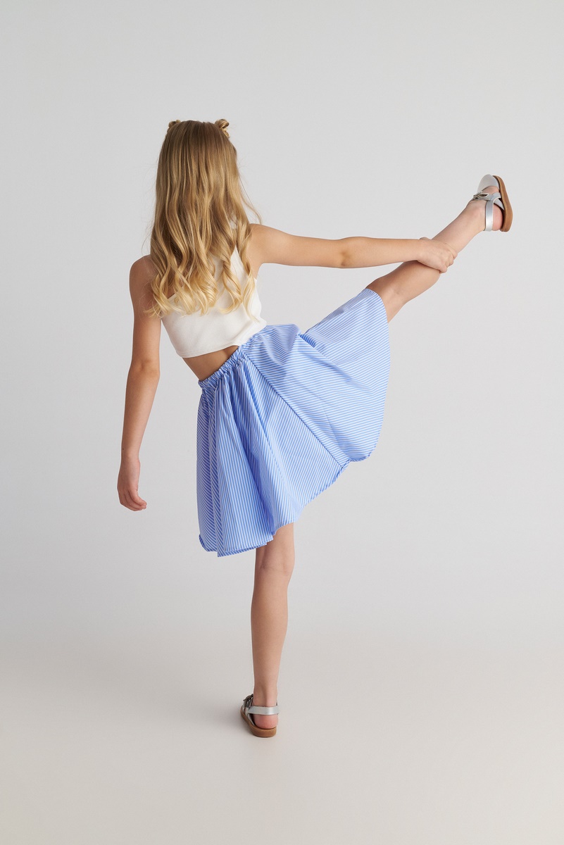 Το φόρεμα The Cool Shirt της Two In A Castle με λευκό ριπ πάνω μέρος, άνοιγμα στη μέση και ροζ-γαλάζια φούστα είναι ιδανικό για άνετες και χαρούμενες καλοκαιρινές εμφανίσεις.