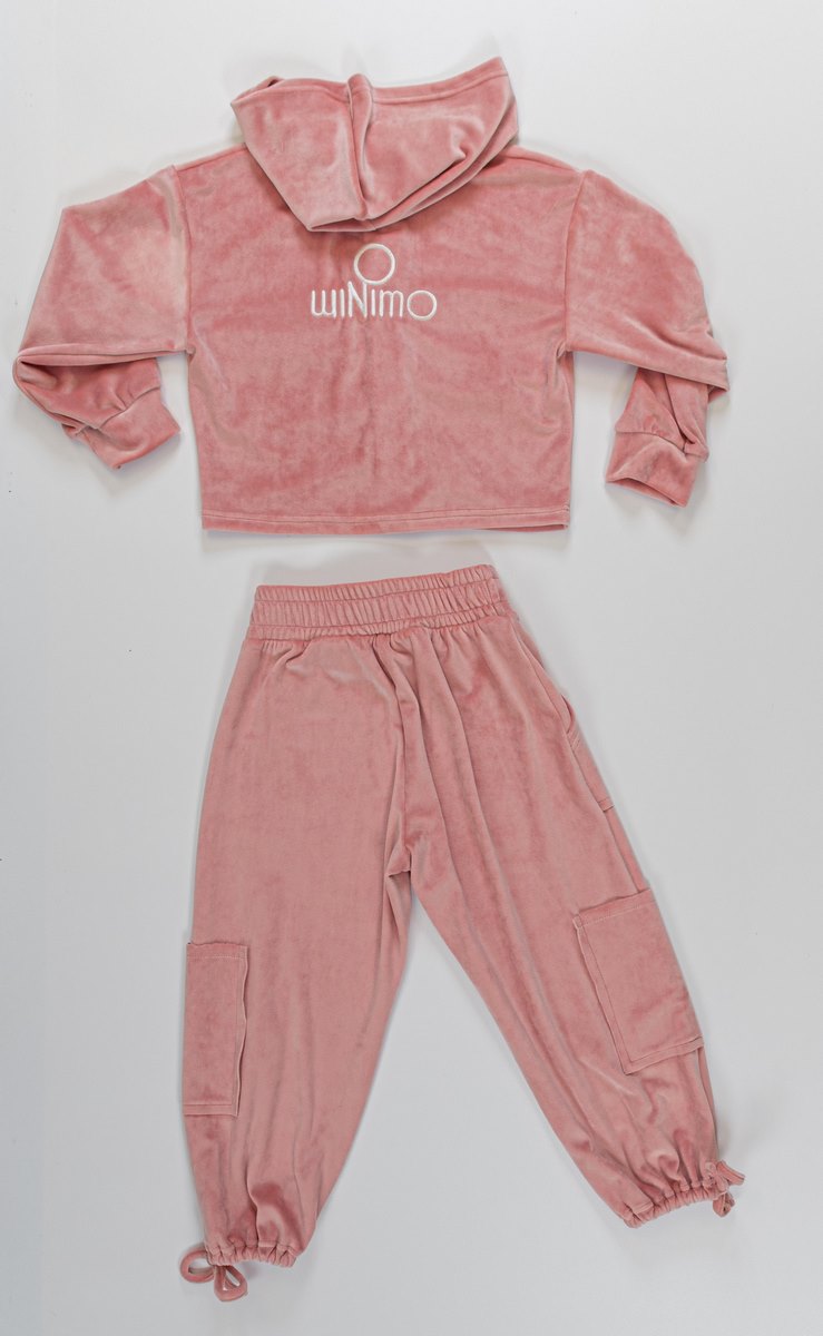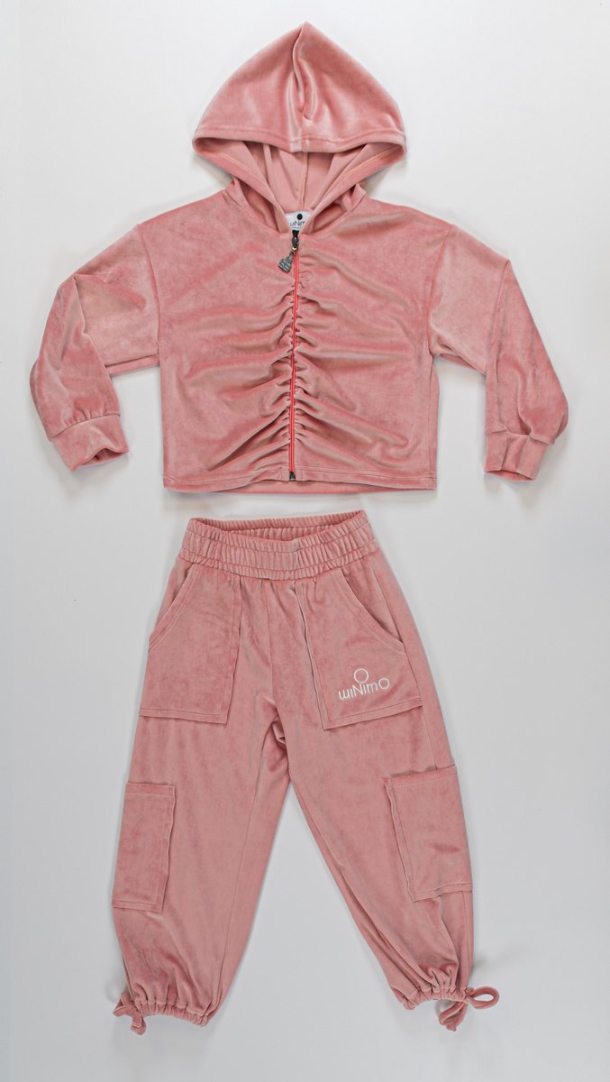 -Σετ βελουτε minimo.bych ζακέτα με σούρες και κουκούλα.